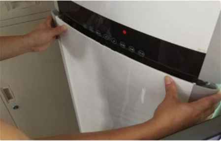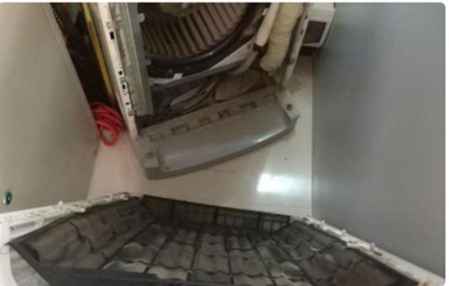 7、第七步示拆下挡风板之后,里面就是空调过滤网了,其扣在挡风板内侧,如图所示的样子。