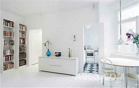点评:一张大木桌搭配简单的方格柜,这里是可以用餐的书房?还是具有阅读功能的餐厅?北欧风格的空间定义就是随心所欲
