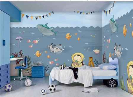 点评:这个房间墙上画了一个海底世界,小孩子的年纪正是好奇的时候,画上很多小动物他一定非常喜欢。