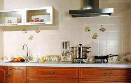 2、 针对厨房瓷砖的铺贴高度,一定要事先考虑好。有没有必要铺贴到顶,一般情况下厨房墙面铺贴到2.4米的高度,是很多普通家庭采用的。