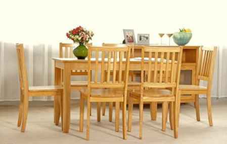 二、注意餐桌的选择:实木餐桌的选择需要注意与空间大小配合,小空间配大餐桌或者大空间配小餐桌都是不合适的。由于购买的实际问题,购买者很难把东西拿到现场进行比较,因此,先测量好所喜好的餐桌尺寸后,拿到现场做一个全比例的比较,这样会比较合适,可避免过大过小。