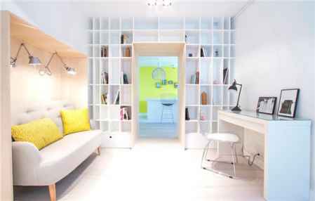 点评:这个书房的颜色搭配以浅色为主,墙上的画则选择黑色,让房间并没有显得颜色很杂,百叶窗的设计让阳光照进来让房间看着更有线条感。