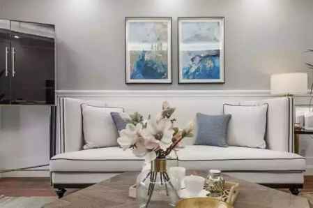 沙发背景墙,两幅油画进行装饰,感觉独有一番韵味。