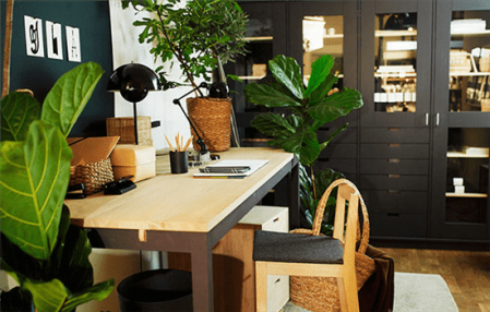 长期看书或者工作难免会导致视觉疲劳,在书桌或窗台摆放一两盆绿色盆栽是很有必要的。还可在书桌摆放一瓶花束带来自然清香。