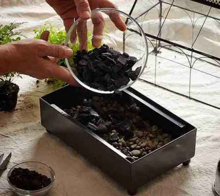 把木炭捣碎成小块,直接放到花盆底部再填上土就好啦~
