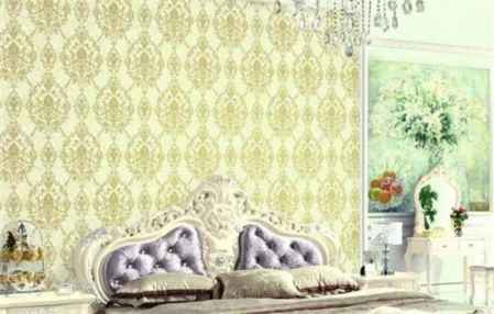 点评:这是一个欧洲田园风格的墙纸,长期居住在喧闹的城市里,人们都会向往安静自然的田园生活,向往自由和随意的生活所以很多家中都会打造**园风格。这个卧室的壁纸就是用了淡蓝色的花朵田园风格壁纸搭配上了古朴回归自然的家具风格越来越受到高品味人群的喜爱。