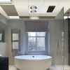 集成吊顶电器是关键。电器部分主要包括取暖模块、照明模块、换气模块三部分,灯泡取暖已经基本淘汰。中低端的有碳纤维和陶瓷PTC取暖,升温慢、易衰减,取暖效果一般。目前市场上有一种新型的取暖模块正在热销:浴室空调取暖器。由奥华集成吊顶自主研发的浴室空调取暖器采用空调金属PTC发热源,它发热升温快,功率无衰减、无辐射污染、除雾除湿,成为浴室取暖器的新秀。