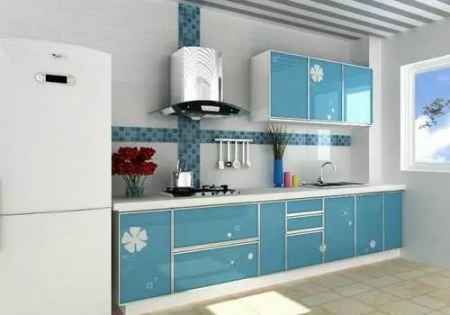6、蓝色橱柜门:看起来非常清新淡雅,工作了一天的白领,用蓝色橱柜门让喧嚣的心灵靠岸宁静的港湾。跟别的颜色搭配,比如说和**的柜体搭配,看起来格外清新醒目,显出成熟和典雅,彼此相得益彰,和谐中不失灵活。