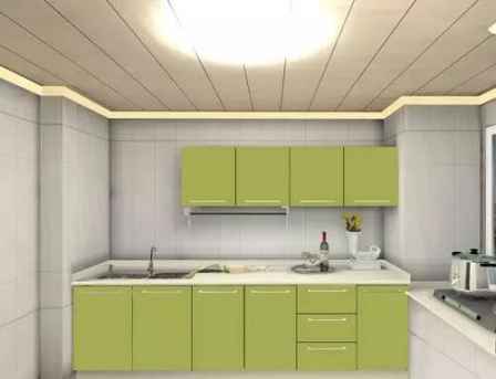 7、绿色橱柜门:现代人都比较崇尚自然、环保,绿色是比较轻松舒爽,赏心悦目的色彩,让整个厨房充满了森系的自然味道。