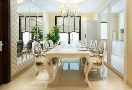 合理的设计,利用它们之间的互相折射,在光源很少的情况下,也完全可以营造出灯火**的效果。例如在餐厅中,我们可以在墙面与天花上大面积安装镜子,选择玻璃台面餐桌。这样,不但使空间视觉变大,而且当灯打开时,经过镜子的层层反射,灯光会成倍增长,空间更加绚丽夺目。