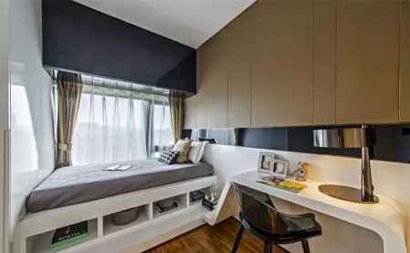 孩子的学习,相信是所有做父母的都非常关注的一点,就算家里再小,也要给孩子准备好一个书房,让他有一个安静的学习空间,最合理的地方,就是他自己的卧室了,做个榻榻米加上书桌的组合柜,或者靠窗做个小书桌,书房也是卧室的一角!