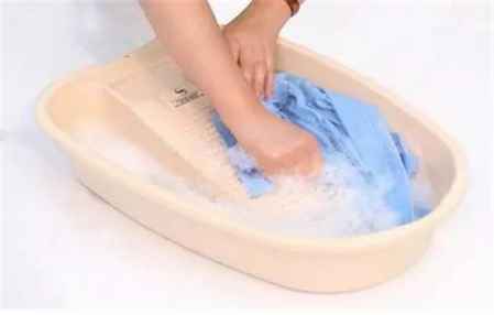在塑料盆中(不可用金属盆以免腐蚀)按1:24的比例加入84消毒液和清水,将衣物完全浸泡其中,静置30分钟,30分钟后再对其进行揉搓。