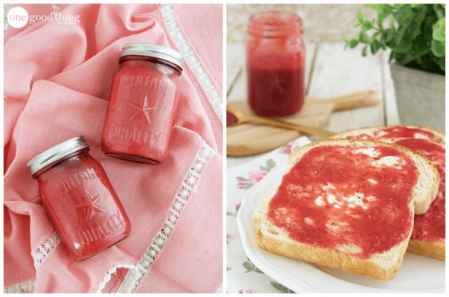 e.搅拌均匀后稍稍加热离火,在果酱冷却前将其装入消毒好的瓶子里,拧紧盖子倒放至冷透即可。