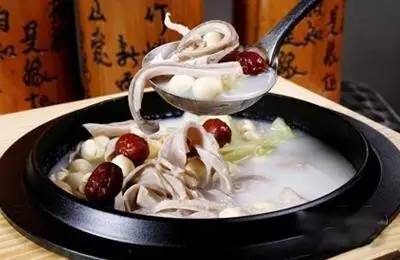 3)猪肚条,莲子,葱姜,足量水一起加入汤锅。大火烧开,小火煲到汤呈奶白色。