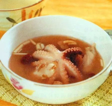 此补气补血汤还健腰膝,所以中年妇女腰酸背疼者,可以适用。另外,章鱼干、猪脚可捞起佐餐用。