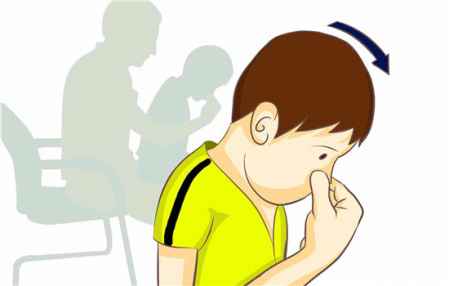 止血:坐下来,低着头往前倾,防止血液下咽。然后用拇指和食指捏住鼻子硬骨和软骨的交界处,大约是在鼻侧正**的位置,按压 10 分钟左右。假若简单按压不能止血,那就把棉球或纸巾揉成和鼻孔差不多大小的团状,塞进流血的鼻孔,然后再按压。如果有条件,还可以用冷水袋或湿毛巾敷前额和后颈部,这样可以促使血管收缩,从而减少出血。