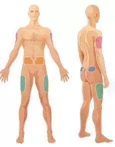 13. 推荐的注射区域为下图中的彩色部位。