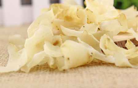 保存百合最常见的方法就是晒干后保存,也就是人们经常看到的干百合,具体方法是将鲜百合一瓣瓣剥下来,洗净后减掉黑色的部分,然后放在太阳地下暴晒,晒干后用纸袋装起来放在通风透气干燥的地方即可,一般情况下,保存半年到1年应该不成问题。只不过干百合的口感会比鲜百合差很多。