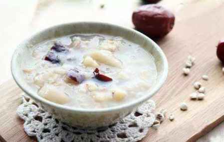 做法:莲子50克、淮山30克、粳米50克、薏米30克。白糖30克。莲子、淮山、粳米、薏米洗净浸透,莲子不芯。 取瓦煲一个,放入莲子、淮山、粳米、薏米煲1.5小时。再加入白糖稍煮片刻即成。