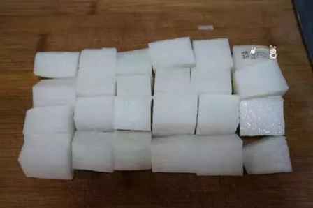 4 | 炖汤的时候准备白萝卜,将白萝卜削皮,切小块