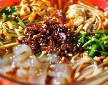 凉皮50g菠菜30g胡萝卜20g黄瓜30g金针菇50g