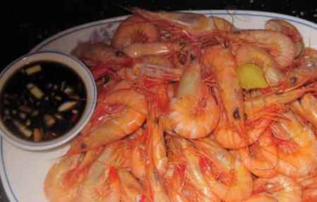 做法:葱切段,姜切片。烧一锅开水,水开后,倒一点儿料酒,放上葱姜。加约30毫升烹调油。将不化冻的虾直接下锅煮。至虾熟捞出,配上蘸汁上桌即可。