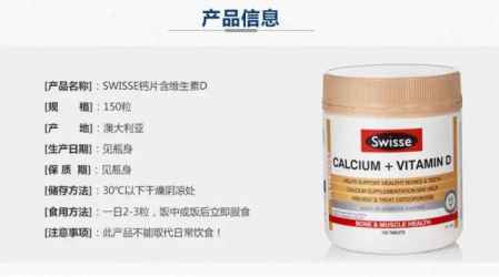 SWISSE**酸钙=Swisse钙+维生素D片所使用的是优质的原料,有效补充钙质,保持骨骼和牙齿健康。所使用的是优质钙:**酸钙,以及天然维生素D3,增加钙的吸收。它还含有Bioperine,独特的黑胡椒标准化提取物。随着年龄的增加,对钙的需求量也会增加。另外,不同的人生阶段,例如,更年期,怀孕和哺乳期,对钙的需求量也不一样。Swisse钙+维生素D可以补充饮食中不足的钙质,预防骨质疏松症。对孕期及哺乳期女性也安全,可放心服用。