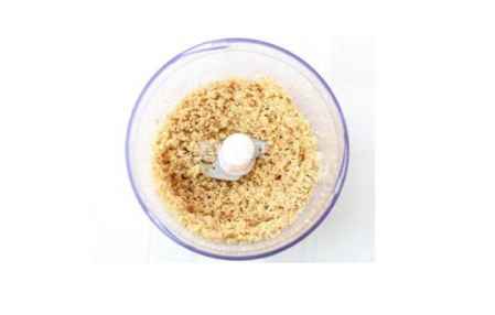 3、使用欧贝尔料理棒把绞切杯中的核桃打成粉。