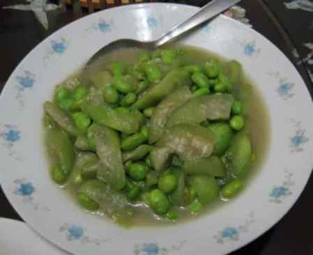 点评:夏天闷热烦躁,饭桌上配上一盘丝瓜炒青豆,刚刚好的当季菜。看着也清爽怡人。绿绿的丝瓜,微绿色的青豆,一起炒,营养又健康。