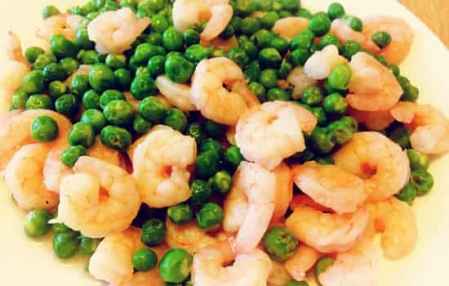 食材:河虾375克,青豆75克,鸡蛋清40克,盐3克,味精2克,料酒2克,植物油30克,芡粉5克,香油1克