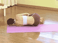 平躺双腿弯曲到胸前,双手抱着弯曲的双腿,然后先向左侧转身,然后再向右侧转身,这样反复20次一组,坚持一天3组。