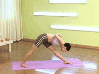 双腿跨开,身体向左腿弯曲,左臂伸直压下到左脚掌旁边,右臂伸直向上与左臂在同一直线上面,坚持5秒换另一个手臂,如此反复,15个为一组,坚持一天做3组。