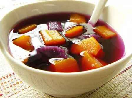功效作用:滋阴、润燥、清热,帮助胃肠蠕动,减少脂肪吸收,有减肥的作用。长期坚持饮用紫薯银耳汤能滋润皮肤,美容养颜。