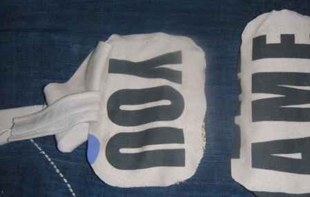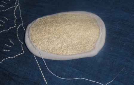 (2)找一个淘汰的针织衫,剪一个与丝瓜瓤一般大的当面,剪一个条当把手,再剪针织衫的螺纹底边当包边。