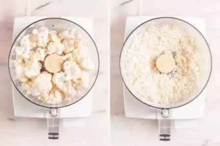 把花菜放入料理机搅碎,没有料理机的朋友用刀切碎也可。注意不要太细,保持花菜颗粒的嚼感。