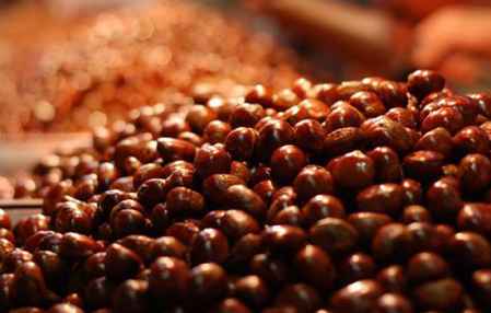 糖炒栗子** 刚出锅的栗子立即吃小心炸烂嘴