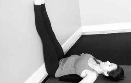 8.最后,放下两腿时,曲膝,使双腿踩住墙并抬高**。然后放下**,呼气,起身回到坐姿。