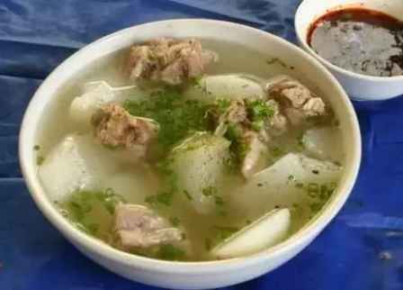 ④倒入汤锅,把浮沫除去,放萝卜;⑤再20分后放盐