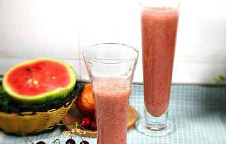 做法:西瓜去皮切成块,苹果去皮去核切成块,将材料放入果汁机中搅打,最后再加入**汁即可。