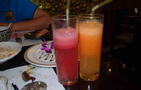 做法:将西瓜150克、鲜蜜桃150克去皮、核,切块,加入蜂蜜和凉开水混合,共入果汁机中搅碎,过滤成果汁。然后,果汁中加入**汁及冰块搅匀,加以装饰即可。