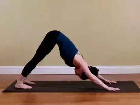 下犬式看起来是如此的简单而优美。但是,看起来容易,做起来难。这个体式事实上非常复杂,而且它的益处也很多。下犬式加强和伸展了**整个身体,而且要求双臂,双腿和躯干保持平衡,**均衡,不要使身体的任何一个区域受力过大。(保持几个深长的呼吸,你就会明白我的意思。)