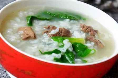 1、大米洗干净熬成粥。猪肝切片,飞水捞出,冲净血待用。