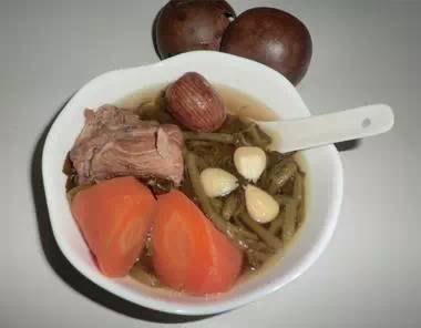 做法:洗净所有材料,切一片老姜备用。锅中注入8分满水,水开后,放入所有材料,以大火煮20分钟,转至小火煮2小时即可西洋菜可以滋润去燥,也被证实对大肠杆菌的细菌有抑制作用。