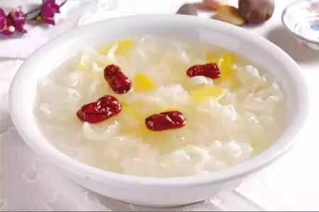 银耳红枣粥。银耳红枣搭配在一起也是一种非常常见的搭配,而我们都知道红枣也是有着补血养气的功效的,所以说把银耳和红枣搭配在一起喝着,对人体也是非常的好的,而且女性在**期间也是可以多喝一些银耳红枣粥的。