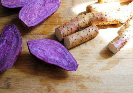 紫薯又叫黑薯,薯肉呈紫色至深紫色。它除了具有普通红薯的营养成分外,还富含硒元素和花青素。紫薯为花青素的主要原料之一。