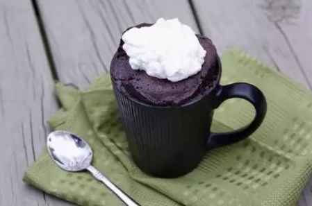将所有成分放入一个大的咖啡杯中,用叉子混合所有食材,直到面糊顺滑,放入微波炉中高温加热3分钟。用搅拌器打发鲜奶油和糖至凝固后挤在烤好的杯蛋糕顶层