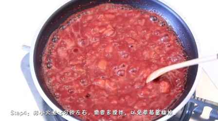 4、转小火煮15分钟左右,需要多搅拌,以免草莓酱糊掉