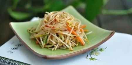 绿豆芽、盐、醋、酱油、油泼辣椒、香菜