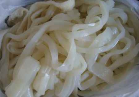 第二,沉淀下的面粉水倒得不干净,面粉糊太稀,如果有这种情况就一定会断口感发粘,如果实在没有能力倒干净,舀干净水,就采用添加淀粉或者面粉的办法将粉浆和稠,也不要太稠,要比浓牛奶稠一点就可以了,