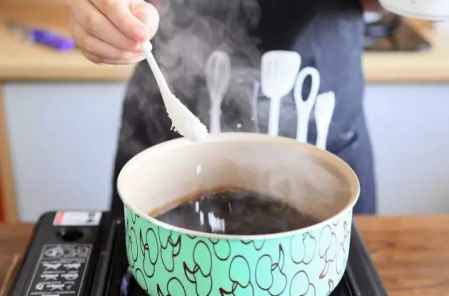 3.将酱油烧热,煮沸后加入适量的糖,盛出放凉备用。